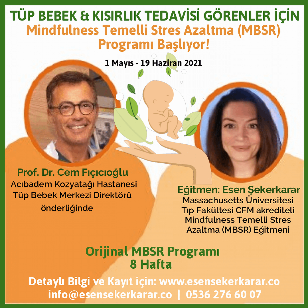 Mindfulness Temelli Stres Azaltma (MBSR) Programı Türkiye’de ilk kez sağlık sektöründe Acıbadem Kozyatağı Hastanesi Tüp Bebek Merkezi Direktörü Sayın Prof. Dr. Cem Fıçıcıoğlu önderliğinde tüp bebek ve kısırlık tedavisi görenler için hizmete giriyor.